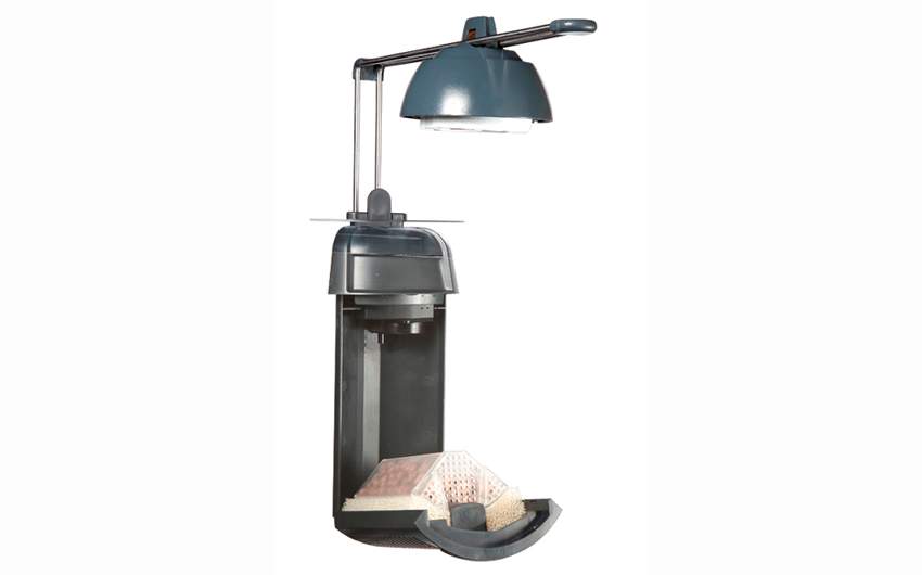 Sus pies son estables y de goma, que evitan la necesidad de esterillas u otras bases. La placa de cubierta simplemente se engancha con clips y deja abierta una pequeña rendija de aire, por la que los animales no se pueden escapar.