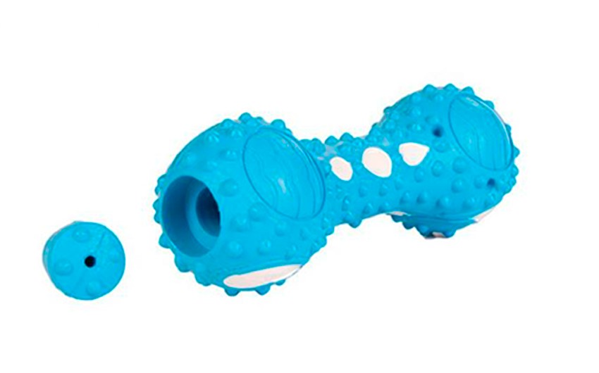 Te presentamos esta pesa de caucho, la que puedes rellenar con agua y posteriormente también, congelarla, lo que ofrece una diversión adicional en época de verano para tu mascota.