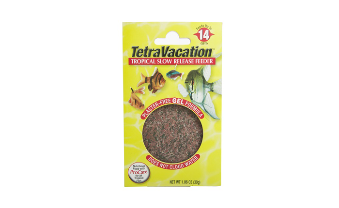 Sal de tu casa con la tranquilidad de que tus peces estarán correctamente alimentados. El alimento Tetra de vacaciones y fin de semana es un alimento de liberación lenta para unas sanas vacaciones. Este avanzado producto reemplaza a los viejos bloques o estrellas de cal que ensucian el agua. Hecho a base de gel contiene el alimento para sus peces. Contiene: 30 GRS