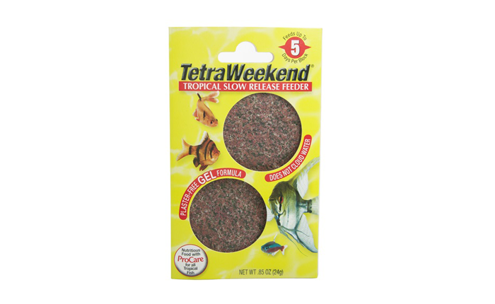 Sal de tu casa con la tranquilidad de que tus peces estarán correctamente alimentados.El alimento Tetra de vacaciones y fin de semana es un alimento de liberación lenta para unas sanas vacaciones. Este avanzado producto reemplaza a los viejos bloques o estrellas de cal que ensucian el agua. Hecho a base de gel contiene el alimento para sus peces. Contiene: 24 GRS