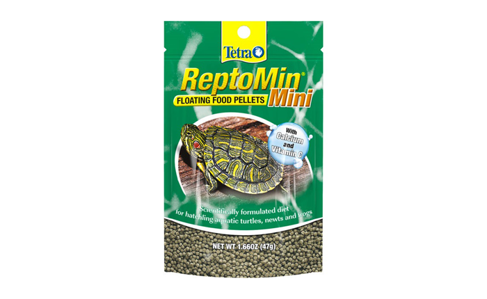 Pellets flotantes pequeños para tortuguitas acuáticas, ranas y tritones, fortificado con calcio y vitamina C para un crecimiento sano.